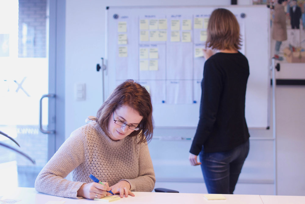 This opportunity canvas was copied on a large piece of paper. Per item, ideas were discussed and put on the canvas using sticky notes. We noticed that when people can see these different elements and work with them, it becomes much more tangible. The canvas became something that we could easily play around with and change or remove sticky notes when needed. Our scientific analysts best understood the business challenges of our client and thus were the ones who guided this exercise.